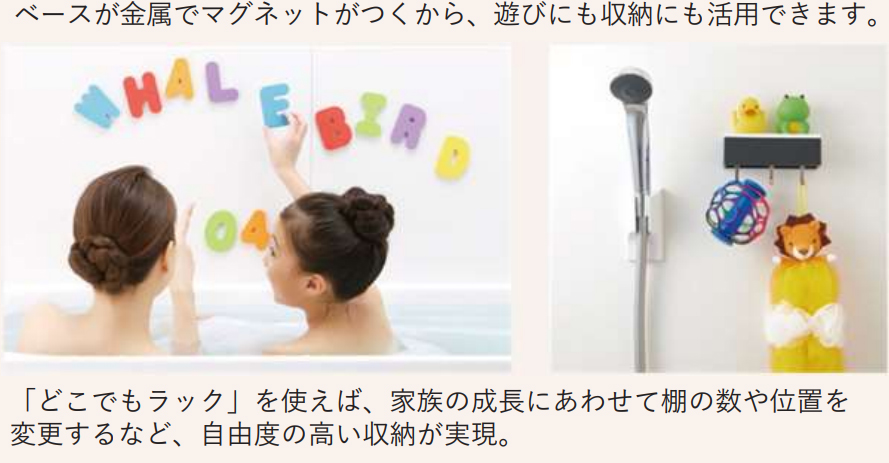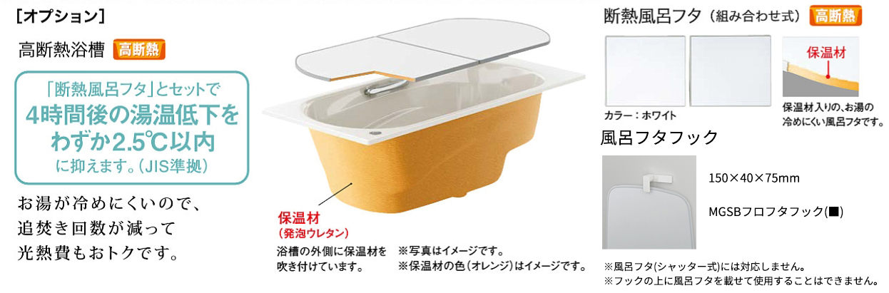 浴槽素材やカラーが選べて耐震性・保温性に優れています。