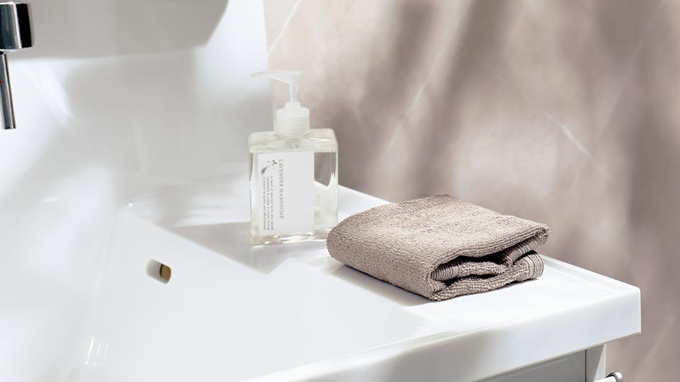 キズが付きにくく、汚れが染み込みにくく、熱に強い素材を使用。壁の油汚れや水ハネもお手入れラクラク。いつまでも美しさを保ち、気持ちよく使えます。