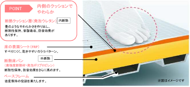冷気をシャットアウトするW断熱構造と、思わず足を進めたくなるやわらかさ。