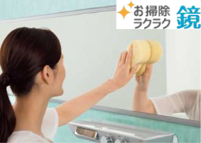 表面を炭素の膜で覆ったお掃除ラクラク鏡なら、簡単なお手入れで水あかをラクに落とせます。