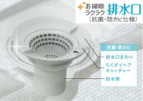 排水口のぬめり・カビを抑え、簡単なお掃除でサッときれいに。