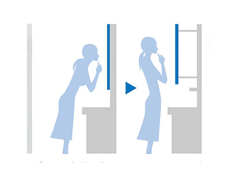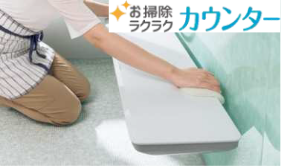 壁や浴槽と離すことで、汚れがたまりにくいデザインに。掃除のしにくかったカウンターの奥や側面、カウンターの下の壁際まで手が届き、お掃除が簡単です。