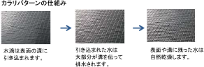 水がコーナーの排水口へまっしぐらに流れる設計なので、使うたびにキレイに。お手入れもラクラクです。