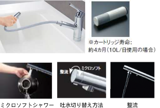 浄水カートリッジを内蔵した便利な切替シャワー水栓です。
