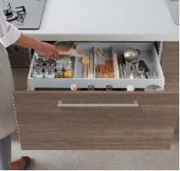 引き出しにはショックアブソーバーを取付け閉まるときの衝撃を吸収。