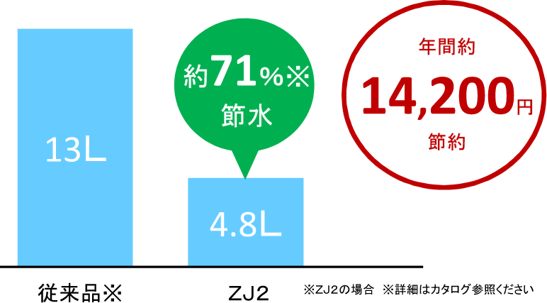 また独自の技術で少ない水でしっかり洗えて節水効果を高めています。