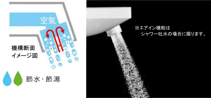 エアイン機能搭載で節水に貢献する「エアインシャワー」