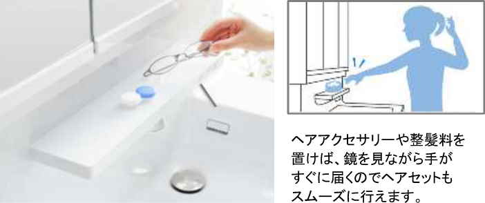 手洗い・洗顔時にメガネや指輪などの一時置きスペースとして使えます。