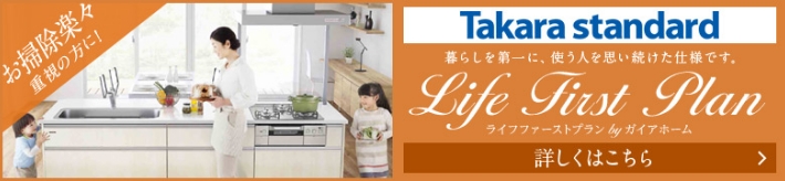 ライフファーストプランは、高品位ホーローで有名な「タカラスタンダード」の設備シリーズです。汚れが付きにくい素材で、丈夫で長持ちなのが魅力です。