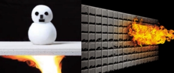 木材は約260℃以上になると引火危険度が高まります。隣家の火災時に外壁は800℃以上の熱にさらされます。しかしヘーベルパワーボードは遮熱性に優れているため内側は引火危険温度に上がりにくく、構造体を類焼から守ります。