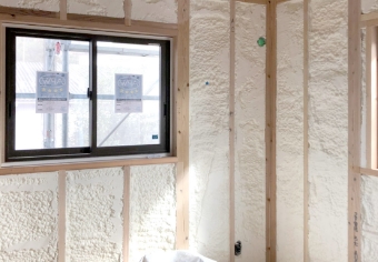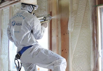 住宅の躯体に直接吹付けて発泡させるアクアフォームの工法は隙間なく一体化した断熱材構造で、 優れた気密性を発揮します。