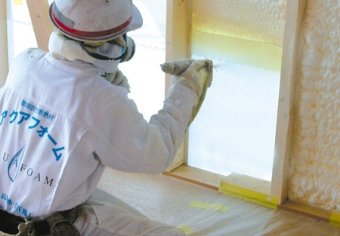 水を使って現場で発泡させる断熱材。